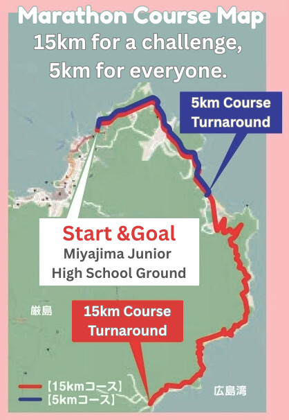 This out-and-back course runs between Miyajima Gakuen and Tsutsumigaura.
